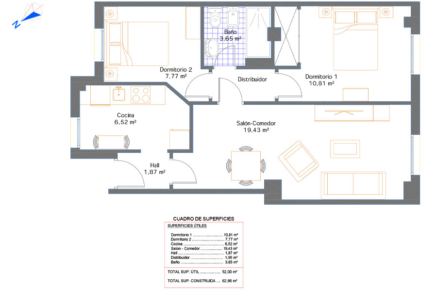 Tiene baño completo (espejo de aumento, secador de pelo, toallas de baño y de mano, dispensadores de jabón de manos, body milk, gel y champú), cocina muy bien equipada (lavadora, horno, batidora, plancha, microondas, vitrocerámica, frigorífico, tostadora, cafetera, y extintor), aire acondicionado (en el salón y dormitorio principal) y calefacción, TV LED y wifi gratuito. Cuenta también con caja fuerte para guardar objetos de valor de los huéspedes.