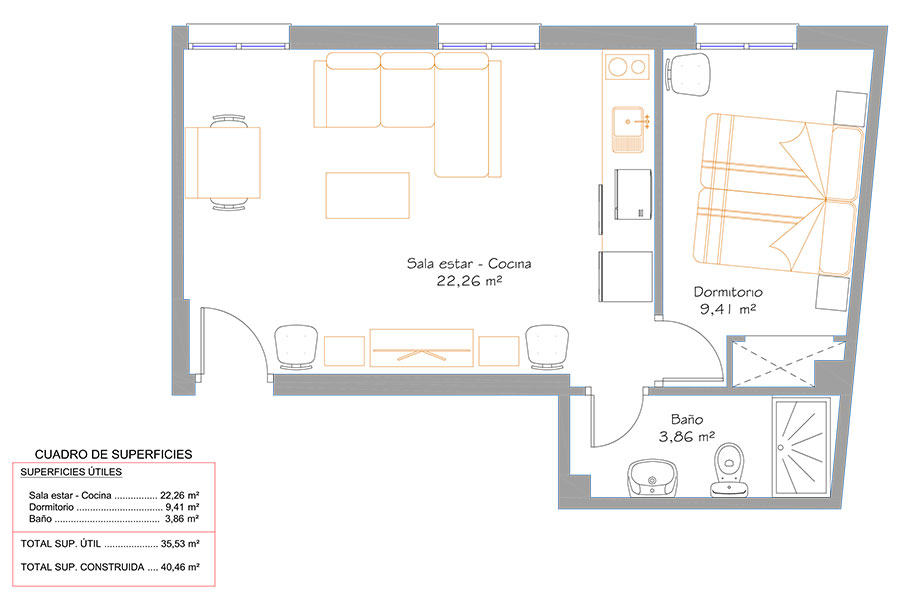 Apartamento en primera planta, totalmente reformado, con una superficie de 35 m2 distribuidos en 1 habitación doble cuyas camas pueden ser separadas en dos individuales o de matrimonio de 1,80 metros a solicitud del cliente, baño completo con placa de ducha (espejo de aumento, secador de pelo, toallas de baño y de mano, dispensadores de jabón de manos, body milk, gel y champú), cocina muy bien equipada (lavadora, horno, batidora, plancha, microondas, vitrocerámica, frigorífico, tostadora, cafetera, y extintor), salón con amplio sofá cama, aire acondicionado y calefacción en el dormitorio y en el salón, TV LED igualmente en dormitorio y salón y wifi gratuito. Cuenta también con caja fuerte para guardar objetos de valor de los huéspedes. Existen diferentes posibilidades de aparcamiento en las inmediaciones de las que podemos informarles si lo necesitan.